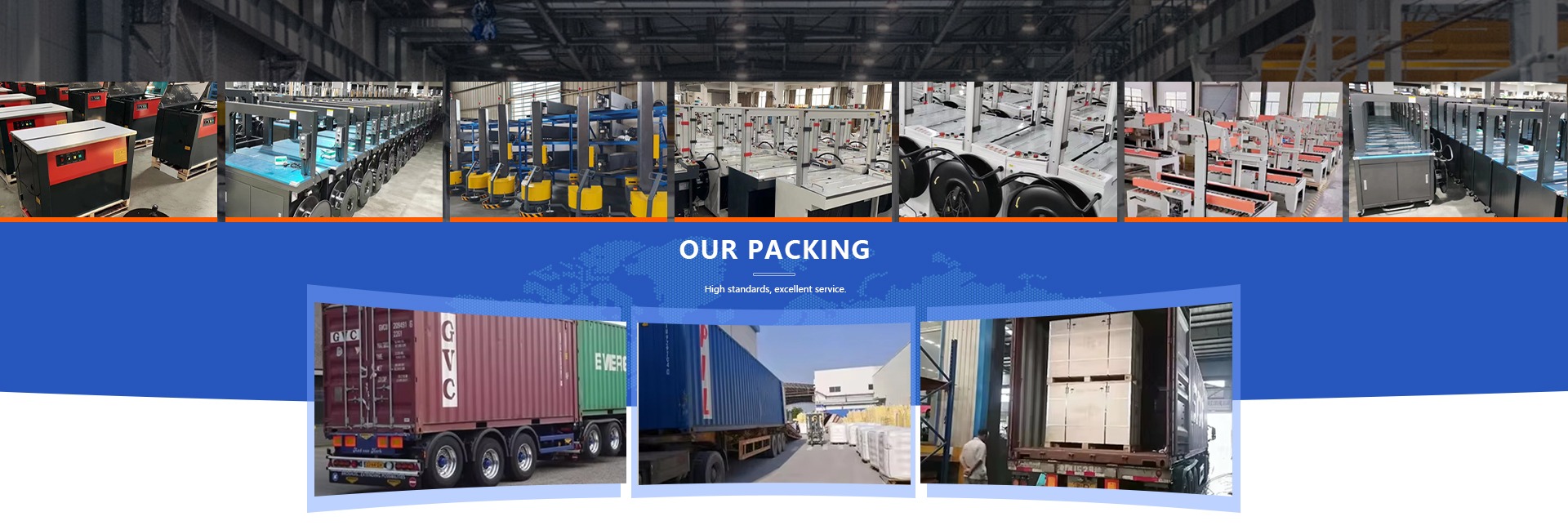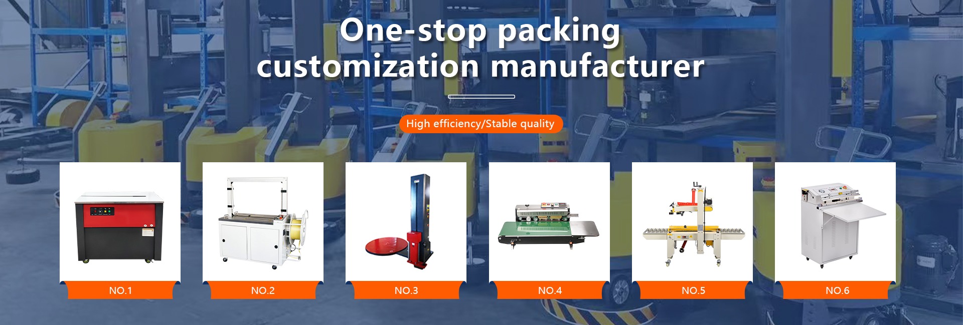Productos principales:Máquina de embalaje de paletas, máquina de flejado semiautomático, máquina de sellado, máquina de envasado al vacío, sellador de cartón